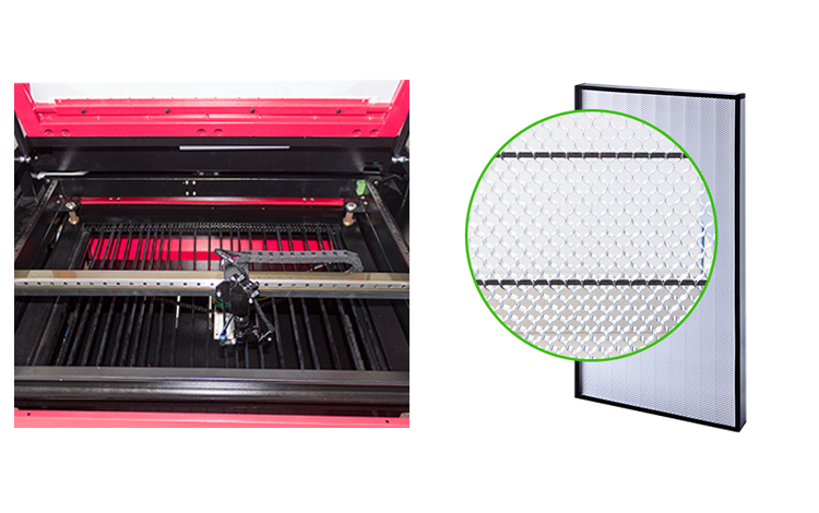 | ① 铝合金刀架适用于大型物体加工,坚固耐用,装卸方便,受力均匀。 ② 蜂窝平台适用于小型工艺品加工,具有高强度重量比、吸声隔热、无激光反射等特点。 |