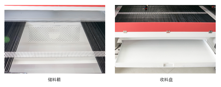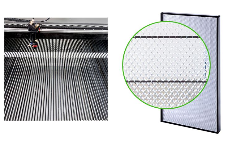 ① 铝合金刀架适用于大型物体加工,坚固耐用,装卸方便,受力均匀。 ② 蜂窝平台适用于小型工艺品加工,具有高强度重量比、吸声隔热、无激光反射等特点。 |